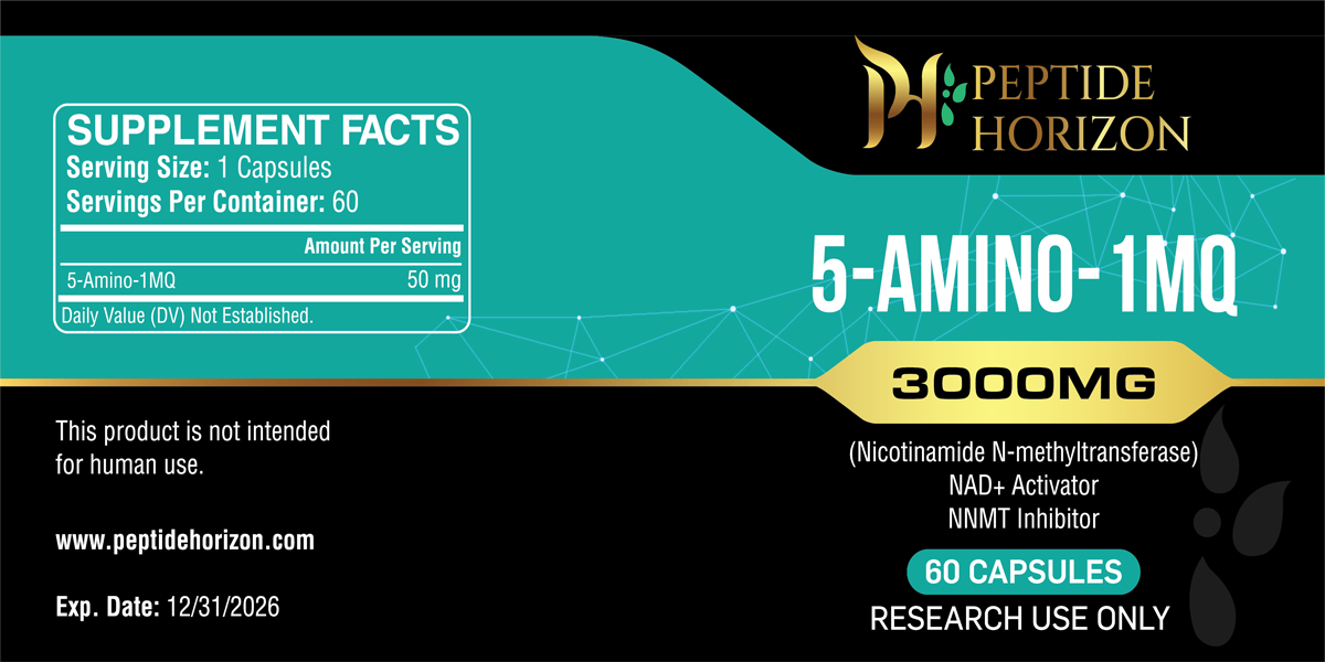 5-Amino-1MQ is a promising research peptide with significant potential for modulating metabolic processes. By inhibiting NNMT and influencing NAD+ levels, this peptide may offer valuable insights into the treatment of metabolic diseases, obesity, and aging. While research is still ongoing, 5-Amino-1MQ’s ability to enhance fat metabolism and energy homeostasis makes it an exciting compound for scientific exploration in the fields of metabolic health, anti-aging, and cellular repair.